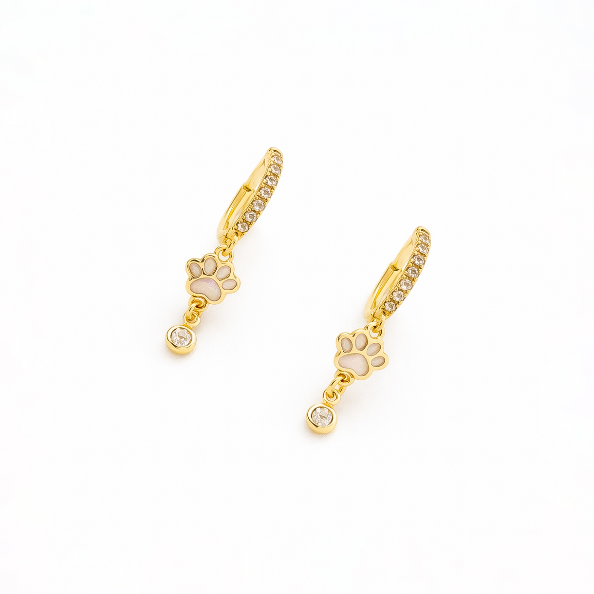 Brinco de argolinha com zircônias e patinha perolada folheado em ouro